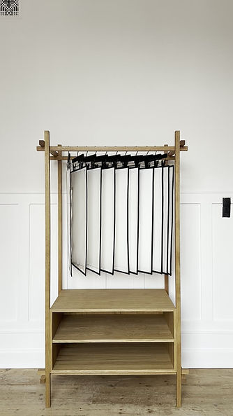 Detaljer Passer til 50 × 70 cm plakater Materiale: Massiv egetræ (olieret) Kapacitet: ca. 15–20 lommer Lommer i arkivkvalitet (syrefri og antistatiske) Messingfarvede hjørner Lommer monteret på bøjle No. X2 Et designmøbel til plakater.